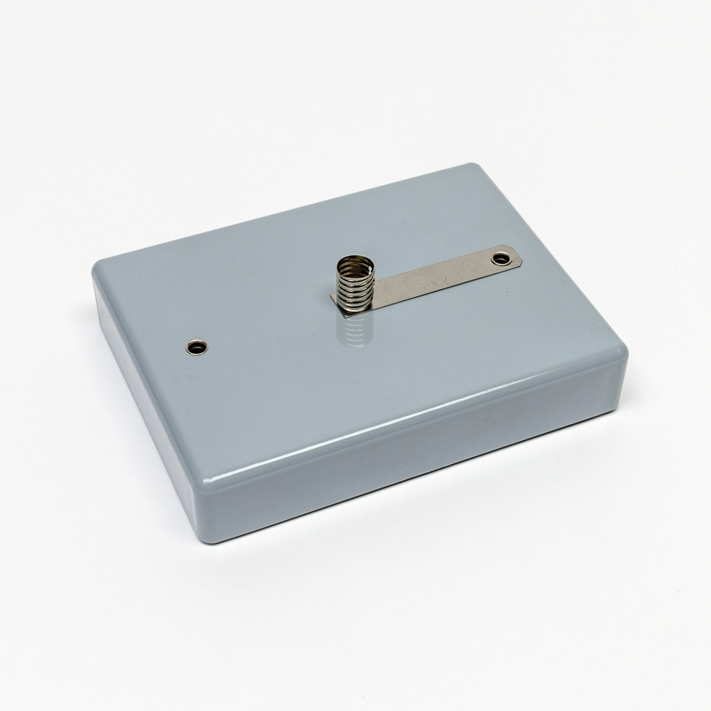 Das Bild zeigt ein graues, rechteckiges Gerät mit einer Metallplatte und einem Ifassansatz. Es dient wahrscheinlich als Experimentiermaterial für den Bildungsbereich, möglicherweise zur Durchführung von physikalischen Tests oder Experimenten.