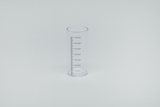 Das Bild zeigt einen transparenten Messzylinder aus Kunststoff mit einer Höhe von 70 mm. An der Außenseite sind präzise Messmarkierungen angebracht, die eine genaue Volumenmessung von Flüssigkeiten ermöglichen.